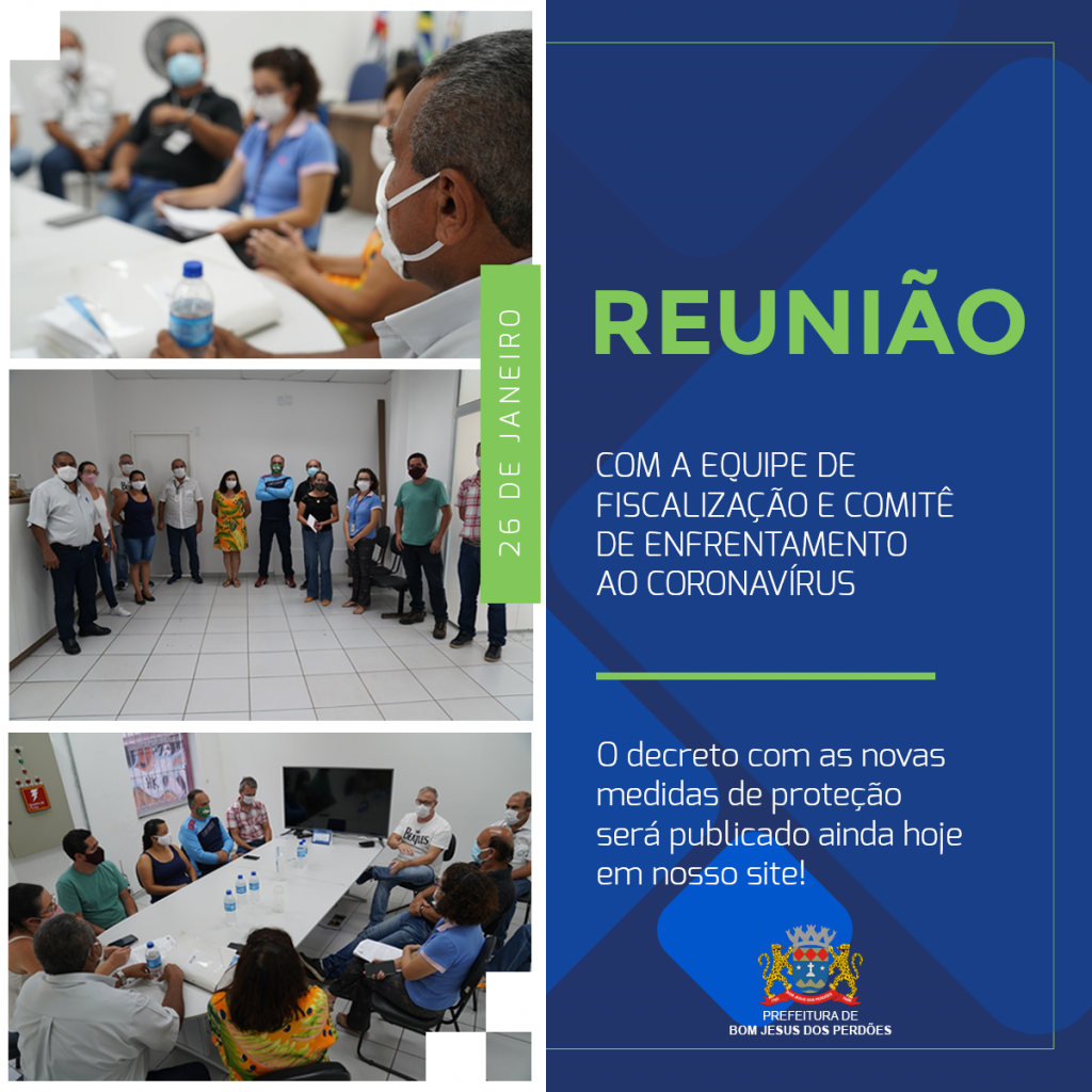 O Prefeito Dr.Benedito se reuniu na manhã dessa terça-feira (26), com a equipe de fiscalização e Comitê de Enfrentamento ao Coronavírus para finalizar os últimos detalhes do decreto municipal referente a nova fase de Bom Jesus dos Perdões no Plano São Paulo.