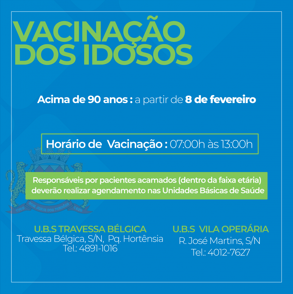 Se você é responsável por algum idoso acamado com idade acima 90 anos, entre em contato com uma das Unidades Básicas de Saúde para realizar um agendamento.