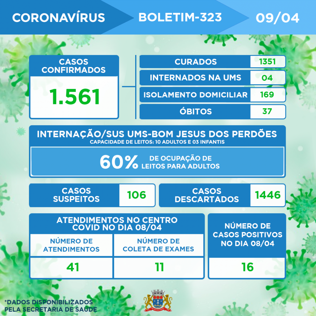 *Dados disponibilizados pela Secretaria de Saúde de Bom Jesus dos Perdões