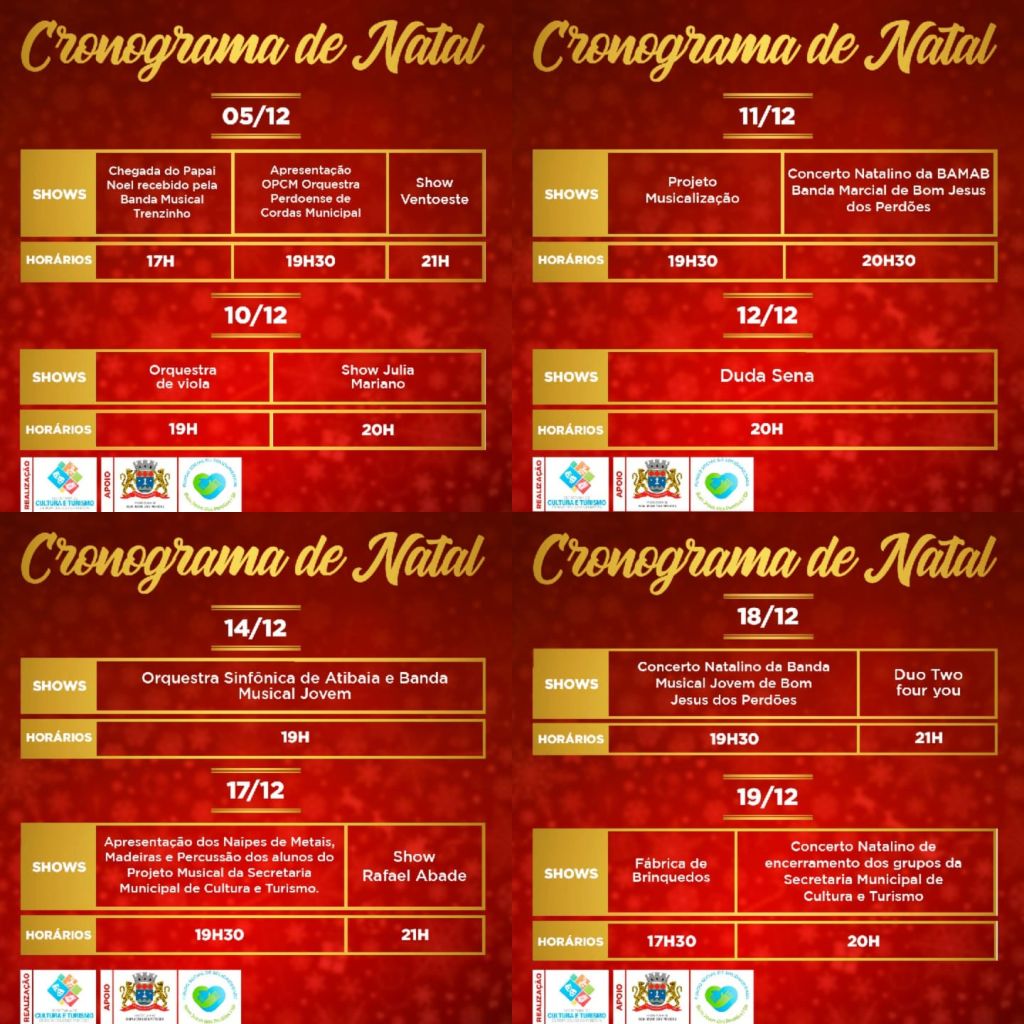 A melhor época do ano está chegando e a Prefeitura fez uma programação mais do que especial, para você aproveitar o natal aqui em Bom Jesus dos Perdões.