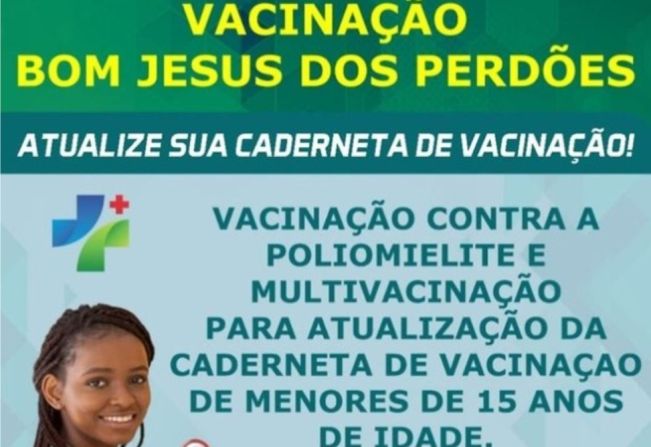 A data da vacinação contra a poliomielite e multivacinação para atualização da caderneta de vacinação de adolescentes menores de 15 anos de idade foi prorrogada até o dia 31 de outubro.