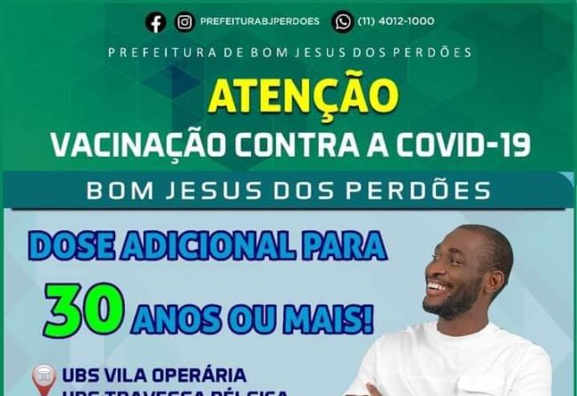 A 4° dose da vacina contra a covid 19 (dose adicional), para pessoas com 30 anos ou mais já está disponível!