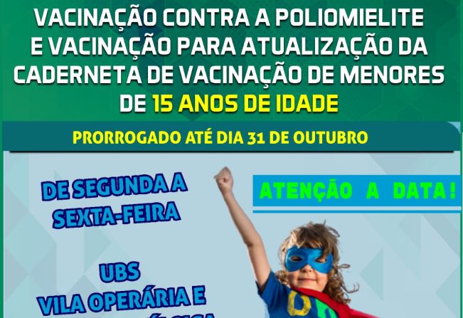 Vacinação contra a Poliomielite e vacinação para atualização da caderneta de vacinação de menores de 15 anos de idade.