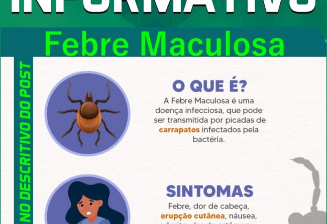 A febre maculosa é uma doença infecciosa, febril aguda e de gravidade variável. Ela pode variar desde as formas clínicas leves e atípicas até formas graves. A febre maculosa é causada por uma bactéria do gênero Rickettsia, transmitida pela picada do carrapato.