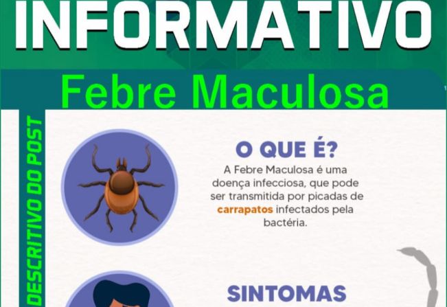 A febre maculosa é uma doença infecciosa, febril aguda e de gravidade variável. Ela pode variar desde as formas clínicas leves e atípicas até formas graves. A febre maculosa é causada por uma bactéria do gênero Rickettsia, transmitida pela picada do carrapato.
