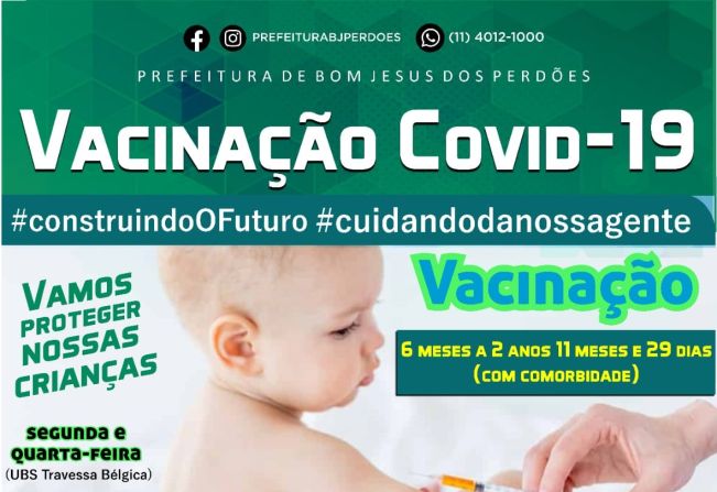 Vacinação para crianças de 6 meses a 2 anos, 11 meses e 29 dias (com comorbidade).