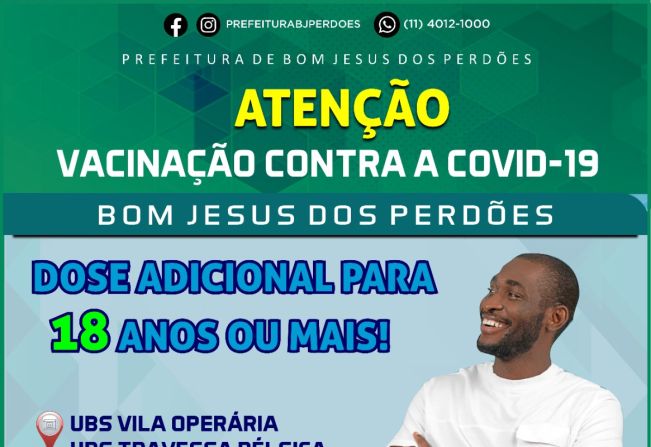 Dose adicional para 18 anos ou mais, a aplicação da vacina será realizada na UBS Vila Operária, e na UBS Travessa Bélgica, das 07H às 15:30H, de segunda à sexta-feira.