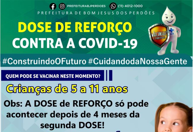 Crianças de 5 a 11 anos que já tomaram a segunda dose a mais de 4 meses podem tomar a Dose Reforço contra a Covid-19.