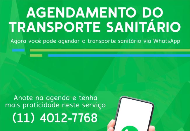 Agora você pode agendar o transporte sanitário da saúde pelo WhatsApp (11) 4012-7768.