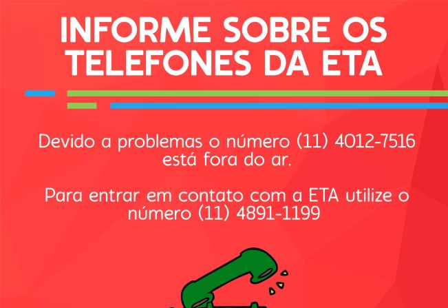 Para entrar em contato com a ETA utilize o número (11) 4891-1199.