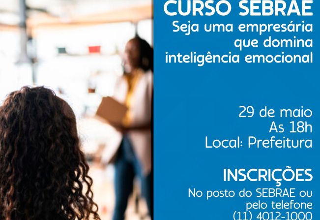 Estão abertas as inscrições para o curso do SEBRAE com o tema "Seja uma empresária que domina inteligência emocional".