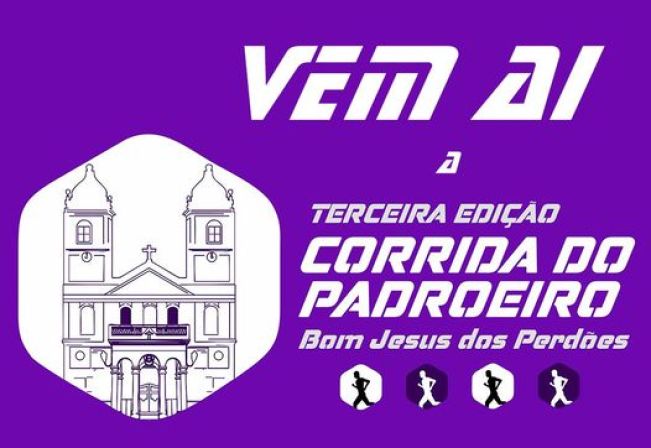 É com alegria que anunciamos a 3ª Corrida do Padroeiro, que ocorrerá no dia 4 de agosto, domingo, às 8h da manhã, no centro da cidade.