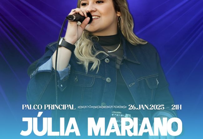 E para encerrar as festividades, no domingo, dia 26/01, Julia Mariano sobe ao palco às 21h, trazendo seu talento e emoção para a Praça de Eventos!