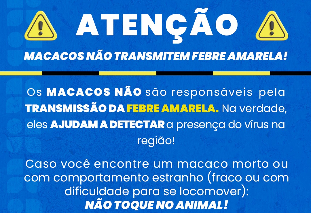 Os macacos NÃO transmitem a febre amarela! Eles são importantes sentinelas no monitoramento da doença, ajudando a identificar a presença do vírus na região. O verdadeiro transmissor é o mosquito infectado. A febre amarela não é contagiosa, ou seja, não passa de pessoa para pessoa.