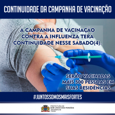 A Campanha de Vacinação Contra a Influenza terá continuidade nesse sábado (4). Essa será a quarta remessa de vacinas no município e 2.170 pessoas já foram vacinadas.