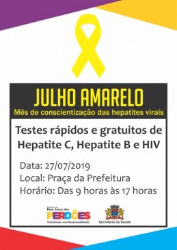 Esses testes são uma ação da Secretaria por conta do Julho Amarelo, mês de conscientização das hepatites virais.