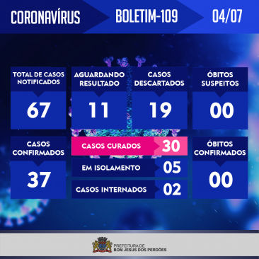 Os pacientes estão em isolamento domiciliar, chegamos aos 37 casos confirmados.