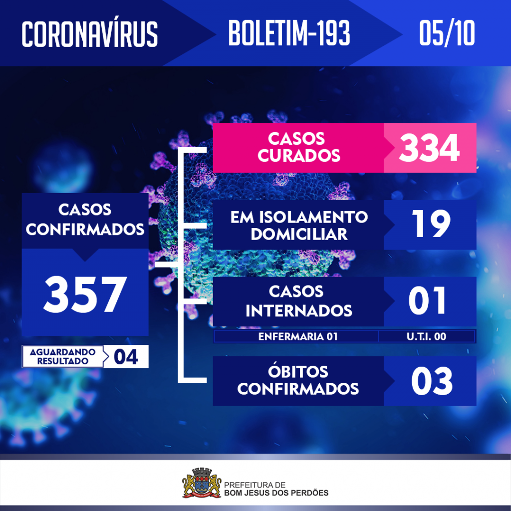 Bom Jesus dos Perdões tem mais 08 casos confirmados de Covid-19.