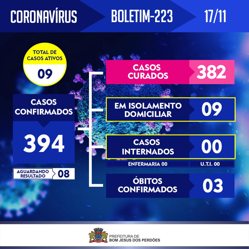 Bom Jesus dos Perdões registra 04 novos casos positivos de Coronavírus.