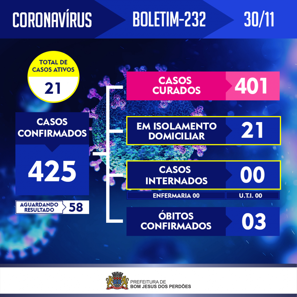 Registramos 09 novos casos positivos de Coronavírus que estão em isolamento domiciliar.