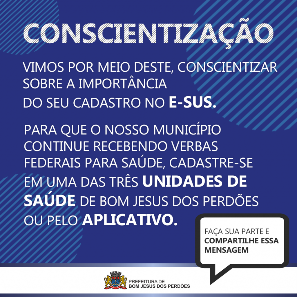 A Prefeitura de Bom Jesus dos Perdões em conformidade as exigências do Ministério da Saúde está realizando o cadastro único dos usuários do SUS em nosso município.